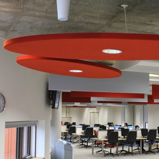 Anywhere with high ceilings and echo problems that need acoustic comfort.