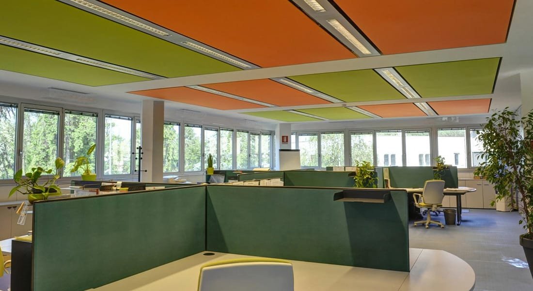 Hard surfaces in call centers cause sound to echo. Acoustic panels, ceiling foam, and sound-absorbing materials reduce echo and improve sound quality.