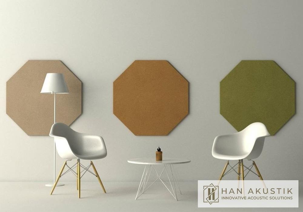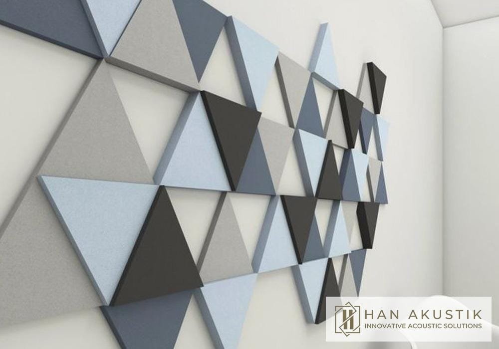 Decorative acoustic panels designed in various geometric shapes to provide sound insulation and enhance interior design.